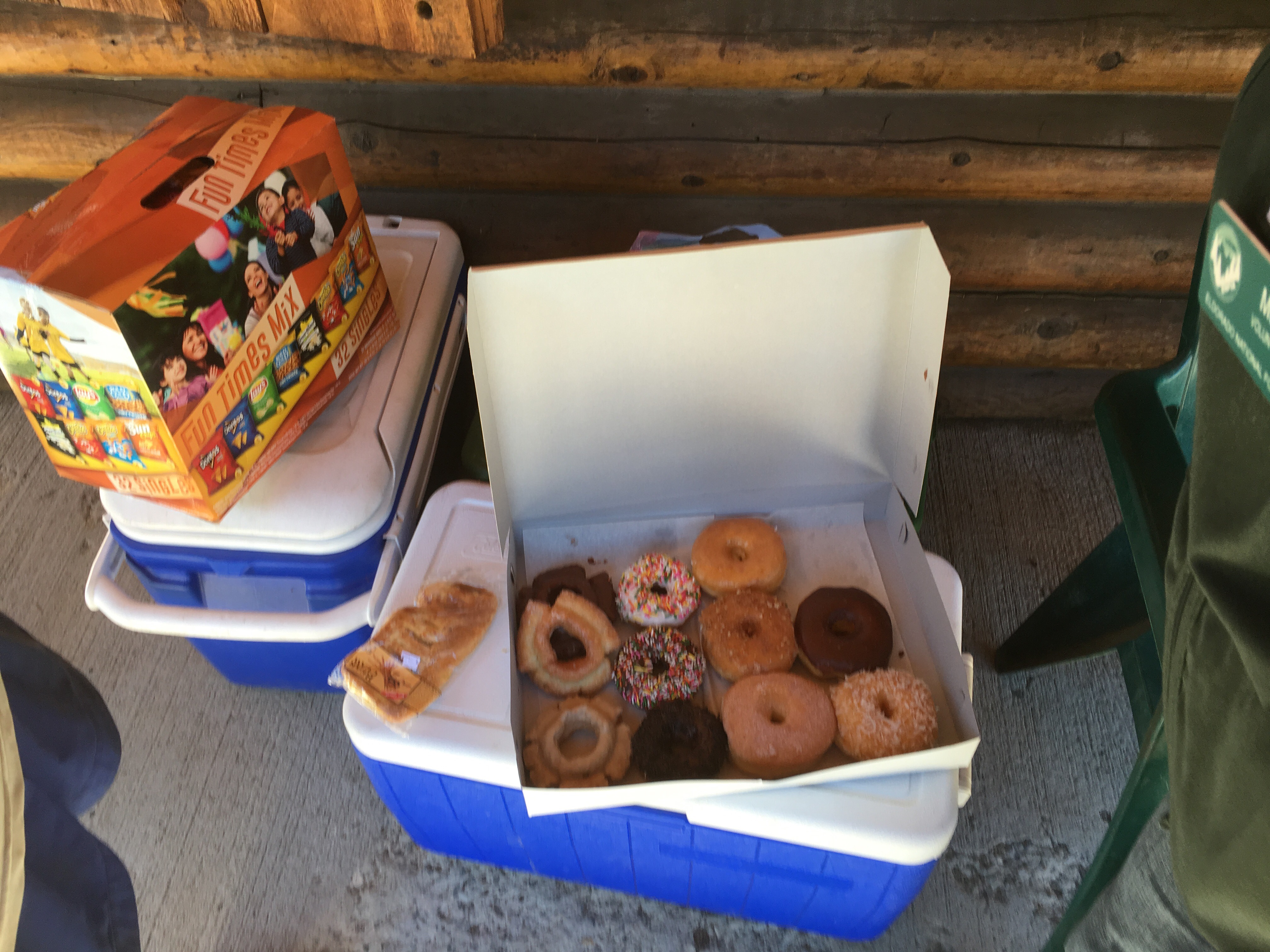 Slept well again last night. Started moving at 6 and got to Carson Pass at 10. There was a visitors center there and they had lots of trail magic there. Doughnuts, soda, fruit, chips, etc. Stayed until 11 and started moving again.