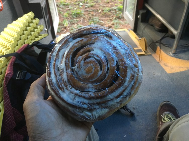 The shuttle came at 3 and stopped at the bakery on the way into town. I bought their humongous cinnamon roll, chocolate milk, a cookie and some other pastry. It all tasted amazing. Got to “town” and Sonic was there. She took the 12:30 shuttle. I lucked out and made it five minutes before the PO closed to pick up my box. The Guthook app said 4:30 but they actually closed at 4. Went to the general store and reorganized my food bag. I’m bringing a ton of food for these final days. I also bought a Monster energy drink. Between that and the bakery I was probably already over 300g of sugar.